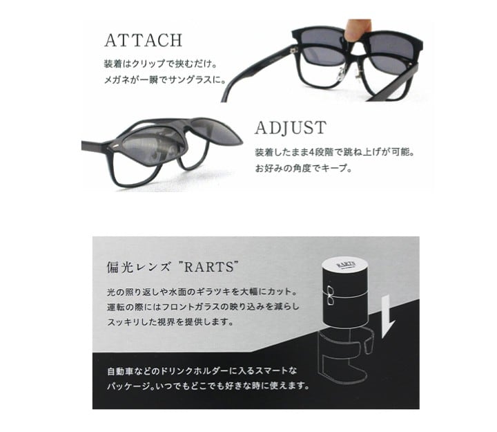 眼鏡にワンタッチで着脱可能!感性を刺激するアーティスティックレンズ・RARTS(アーツ)偏光オリジナルのクリップオン登場!